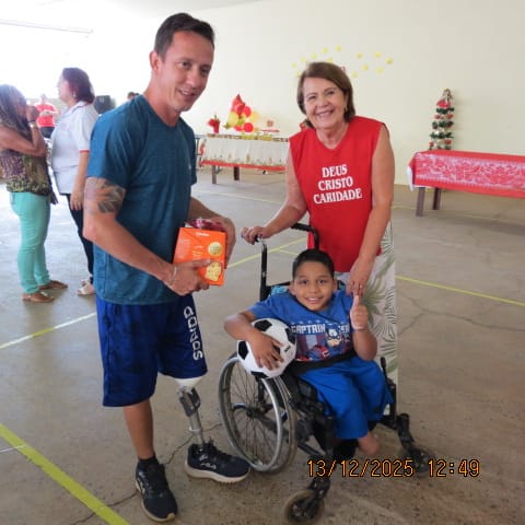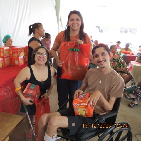A festa, que foi um verdadeiro sucesso, contou com uma programação especial voltada para o bem-estar e o acolhimento. Graças ao apoio fundamental de voluntários e doadores, foi possível realizar a entrega de presentes, brinquedos para as crianças, panetones, cestas de alimentos e leite, garantindo que o espírito natalino chegasse à mesa de cada convidado.